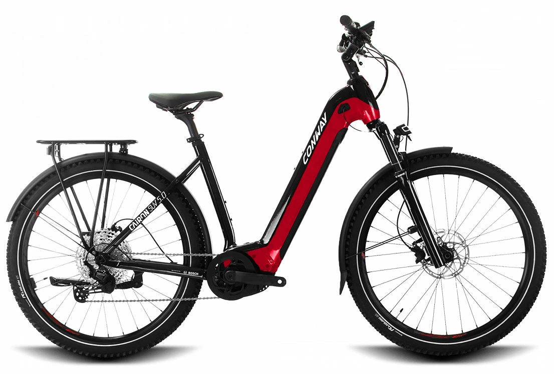 With the CAIRON SUV 5.0 from Conway you are really sporty out on your ride! And the fully equipped e-mountain bike comes not only visually fast across, also the specs are convincing. The latest smart Bosch Performance Line CX drive with 85 Nm paired with the largest Bosch battery with 750 Wh – this e-bike takes you everywhere.